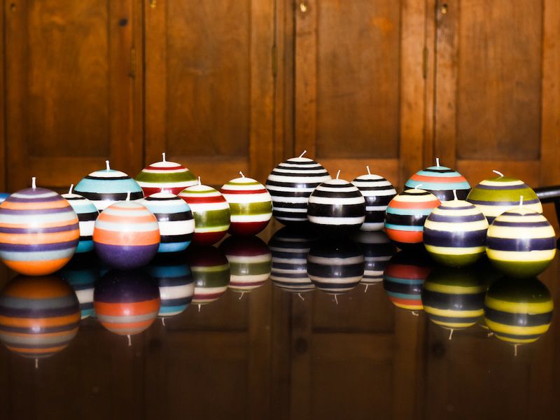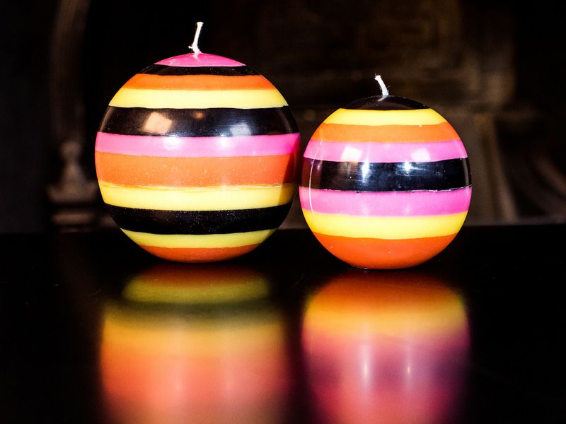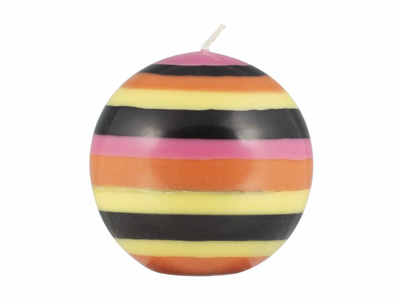 黒のラインにより甘くなりすぎないカラフルなボールキャンドルは、テーブルコーディネートのアクセントにオススメです。 手作業で色ごとにロウを流し込むことで、筆で描いたような柔らかい印象を与えます。火を灯さなくてもインテリアオブジェとしても存在感があるのでギフトにも喜ばれるアイテムです。